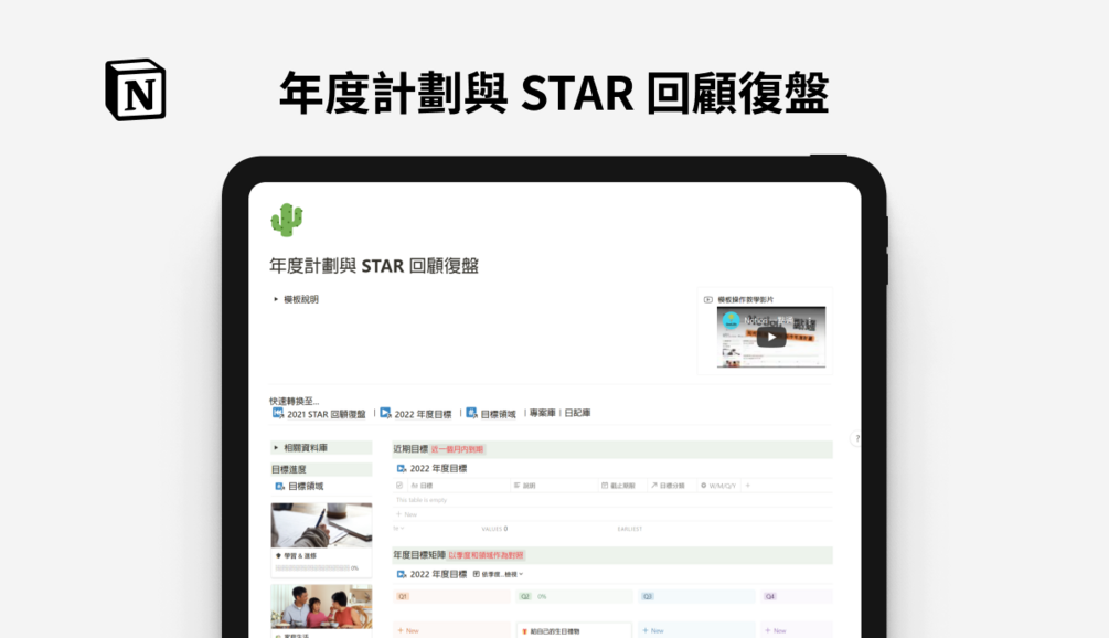 【年度計劃與 STAR 回顧復盤】利用 6 大領域分類目標,以及設計進度條審視達成率,讓追求目標變得更有成就感